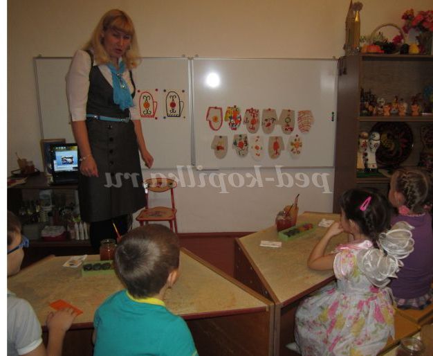 Перед заняттям, по дорозі в ізостудії, в головному холі дитячого саду, діти «знаходять» велику рукавицю, прикрашену бурятським орнаментом.