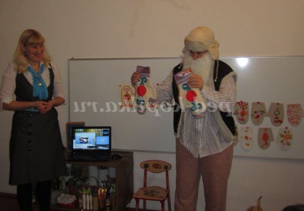 Отримавши згоду дітей, запропонувати подарувати гостям в подарунок рукавички самі красиві і акуратні. Але, гості не можуть у виборі, адже чудових рукавичок так багато. Діти самі роблять вибір, кому подарувати свою рукавичку.