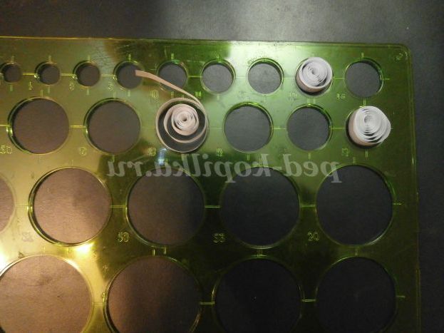 Але для подальшої роботи частіше потрібен інший елемент квілінгу - вільна спіраль (вільний рол). Його виготовлення відрізняється тим, що після того, як тугий рол готовий, його потрібно «розкрутити» до потрібного розміру в спеціальній лінійці для квілінгу (підійде і офіцерська лінійка), і тільки після цього заклеювати кінець ролу (Фото №2).