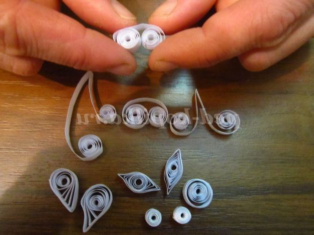 Гілочка виходить шляхом складання смужки нерівномірно (у співвідношенні приблизно 2 до 1), а потім закручувати кінці смужки в одну сторону.