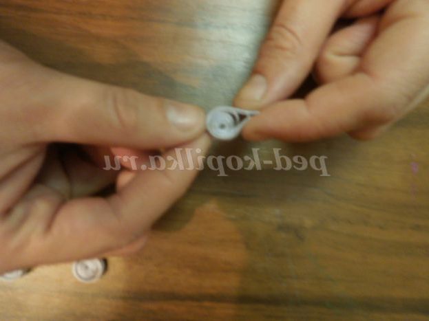 Щоб отримати елемент квілінгу краплю, потрібно вільний рол «приплюснути» з одного боку (Фото №3).