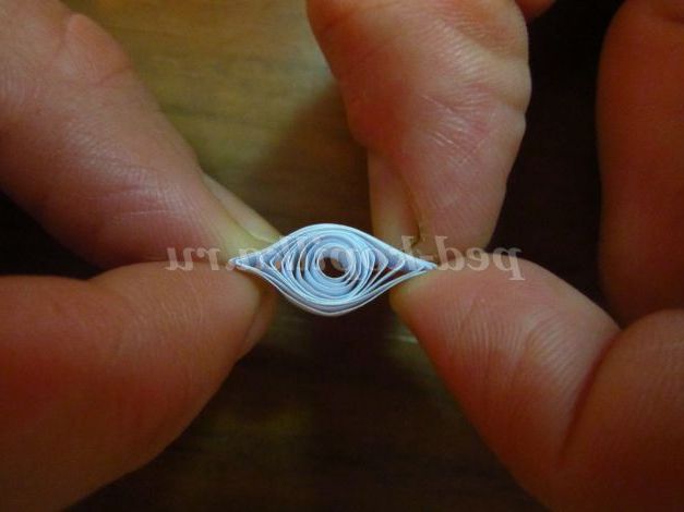 Елемент квілінгу очей вийде шляхом здавлювання вільного ролу з двох сторін рівномірно пальцями правої і лівої руки (Фото №4).