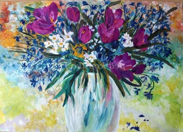 Так як скоро за календарем Весна і свято 8 Березня, будемо малювати весняні квіти - крокуси та підсніжники.