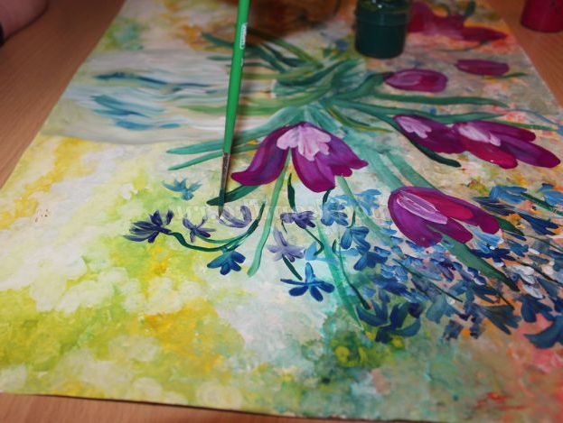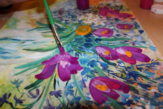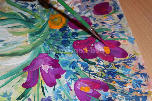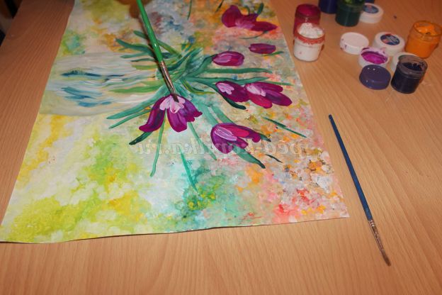 8 етап: широким пензликом наносимо пелюстки крокусів.