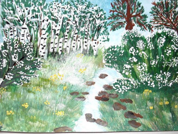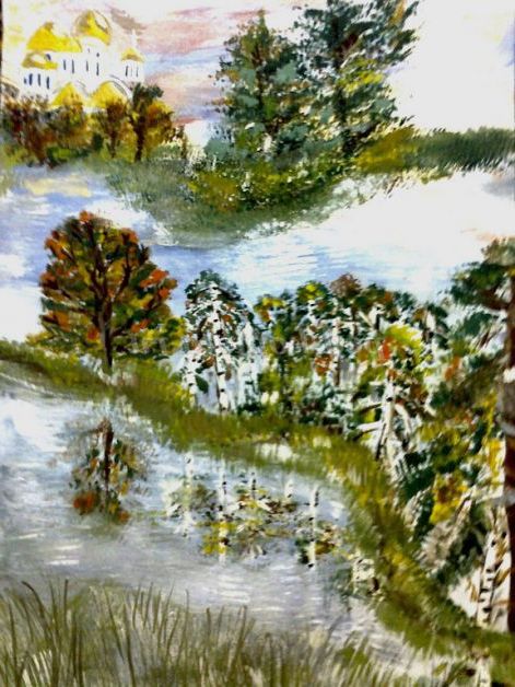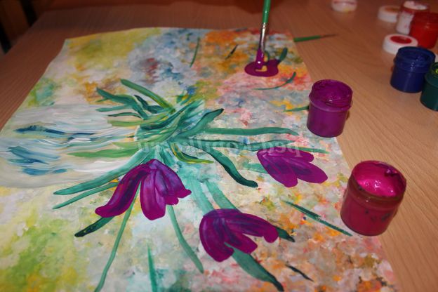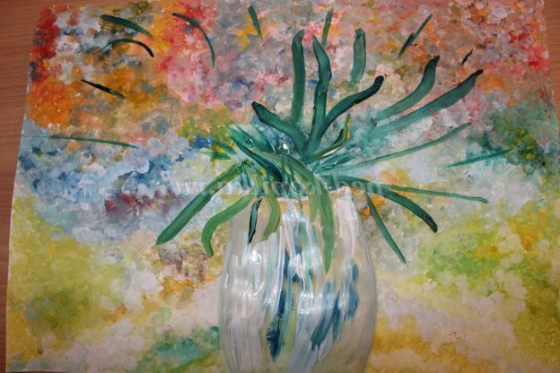 Цей метод малювання дуже цікавий. Як правило, діти із задоволенням беруть участь в процесі малювання. Захоплюватися живописом я стала 5 років тому. З цією методикою була раніше знайома, просто одного разу під рукою опинилася старенька, поламана пензлик. Я її підрізала і помітила, що виходять гарні візерунки. Особливо красиво виглядає фон для пейзажів.