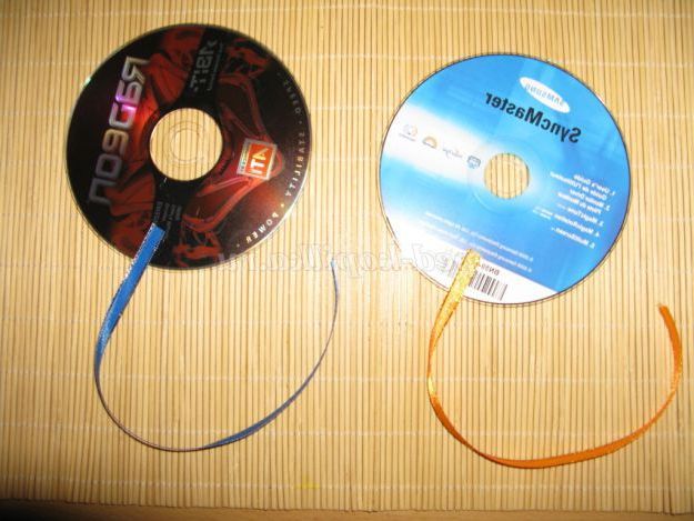 Заздалегідь необхідно приклеїти клеєм «момент Кристал» різнокольорову тасьму до зворотної (не дзеркальної) стороні CD диска.