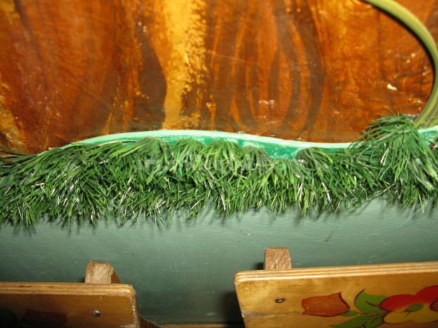 Плитку попередньо офарблюємо в зелений колір, щоб не просвічувала. І після висихання, приклеюємо на потрібне нам місце, додаючи, якщо потрібно, додаткові травички, які будуть під рукою.