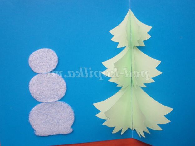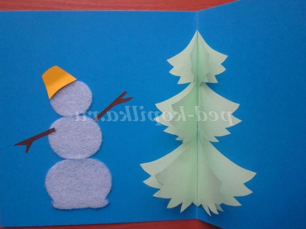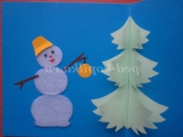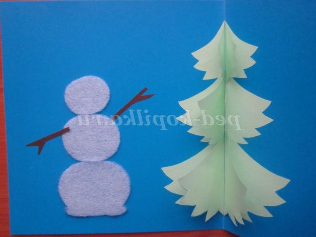 Новорічна листівка «Сніговик біля ялинки». Майстер-клас