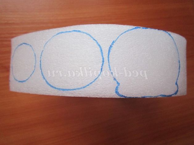 10. Сніговика почнемо споруджувати з нижнього, самого великого кома. Виріжемо деталь №4. Ножиці повинні бути гострими, так як матеріал прилипає до леза. Наклеїв на картон.