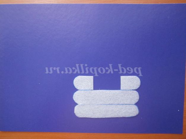 3. Важливо! Не вирізайте відразу всі деталі з ущільнювальною самоклеючої стрічки. Виріжемо одне деревинку і наклеїв на картон на відстані 7 см від лівого краю і 3 см від нижнього краю.