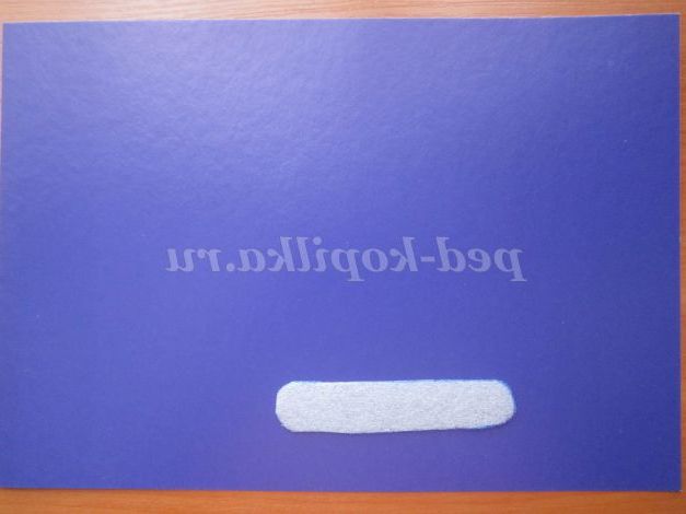 5. Виріжемо третє колода. На ньому треба зробити вікно. Складемо деталь навпіл клейкою стороною назовні. Зріжемо від згину 2 див. Наклеїв дві половинки по краях на відстані 4 см один від одного.