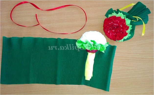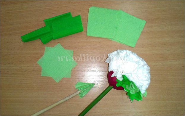 Шпажки обмотуємо смужками крепованого паперу зеленого кольору, фіксуючи їх у кількох місцях клеєм.