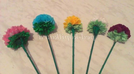 Решту пластиліну обертаємо шматочком зеленої серветки. Наші квіточки готові, залишилося приклеїти листя.