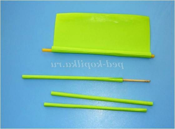 Для виготовлення стебла необхідно скрутити 1/2 або 1/3 частина аркуша паперу зеленого кольору у трубочку з допомогою тонкої палички
