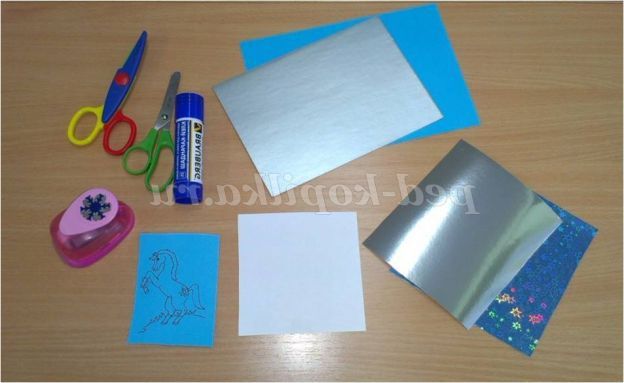 - картинка «конячка» роздрукована на блакитний (синій) папері;