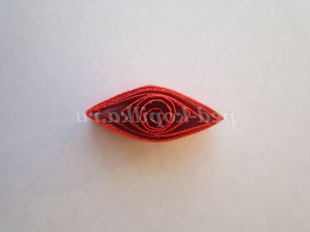 6. Візьміть червону смужку, скрутіть її в спіраль і відпустіть, щоб вона трохи розкрутилася. Кінець смужки підклейте.