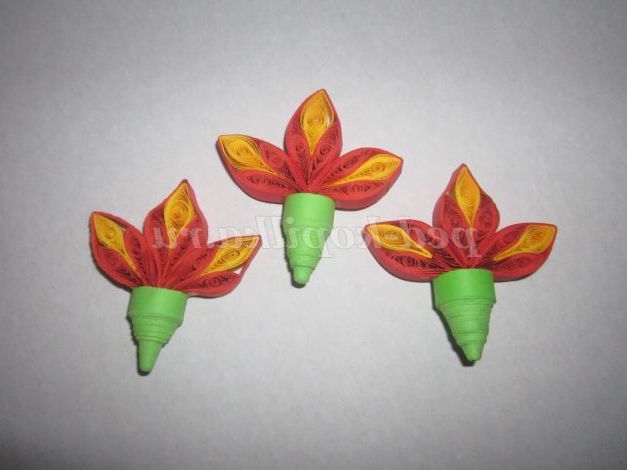 12. Для виготовлення квітів: склейте 3 деталі між собою і вклейте у великий конус. Зробіть 3 квітки.
