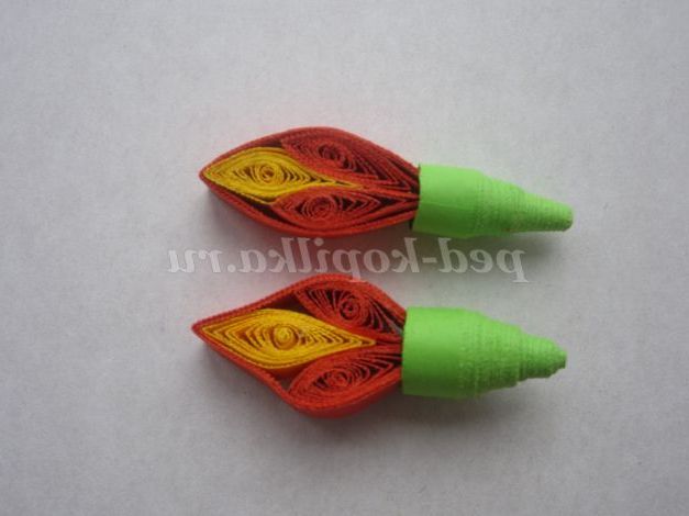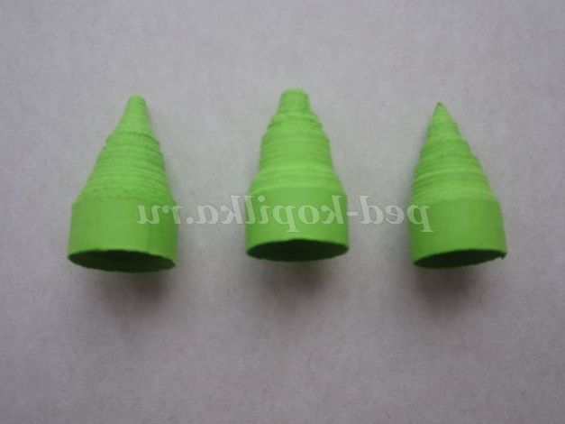 11. Зробіть 2 таких деталі і кожну вклейте в зелені конуси маленького розміру. Вийшли бутони.