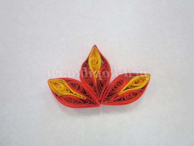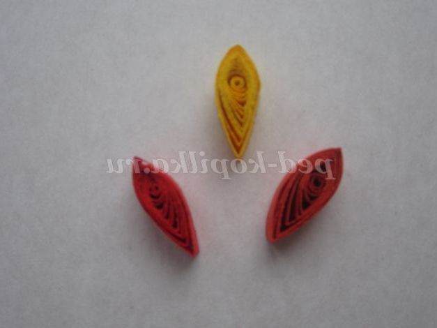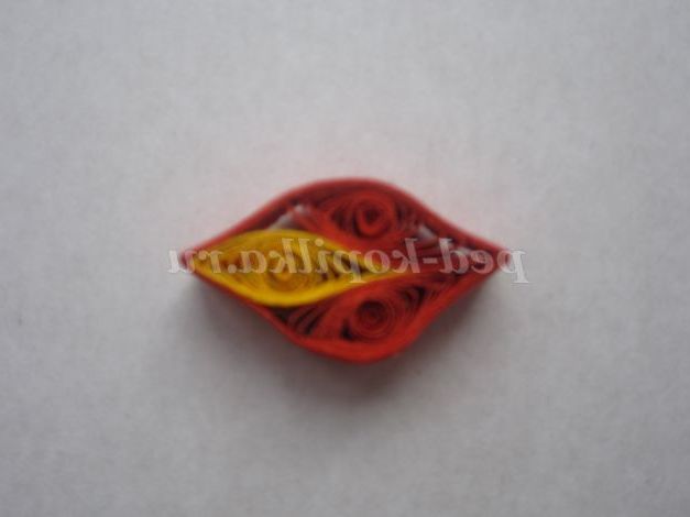 9. Склейте кінці червоних елементів куточком, а потім вклейте жовтий елемент посередині.