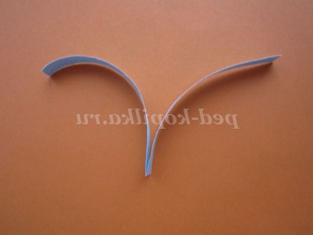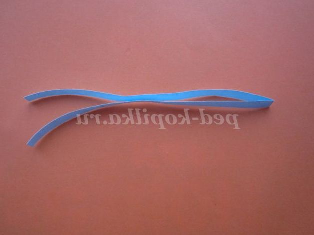 7. Візьміть 1\2 блакитної смужки. Складіть навпіл і закрутіть кінці в різні боки.