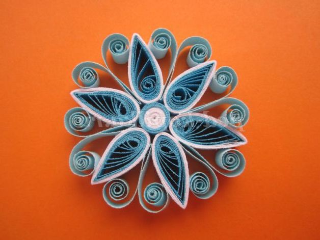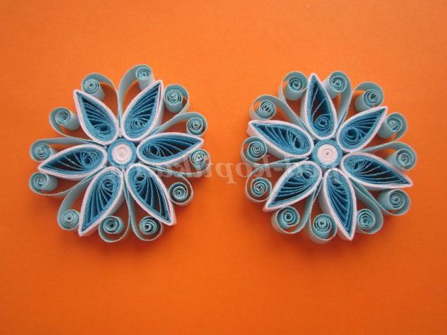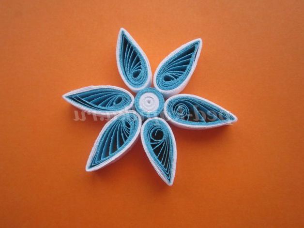8. Виконайте 6 таких деталей і приклейте їх між крапельками». Вийшла сніжинка-квітка. Зробіть 2 сніжинки.