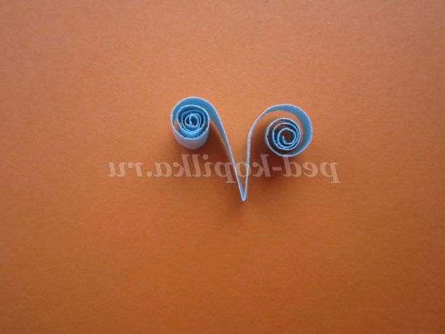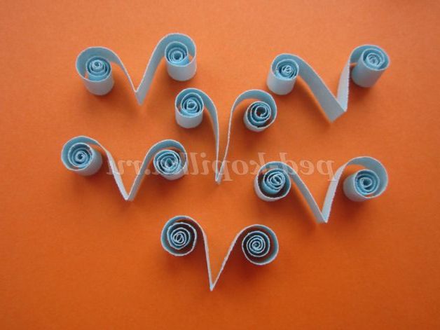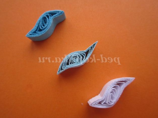 10. Зі смужок білого, синього і блакитного кольору скрутіть такі деталі і склейте їх парами.