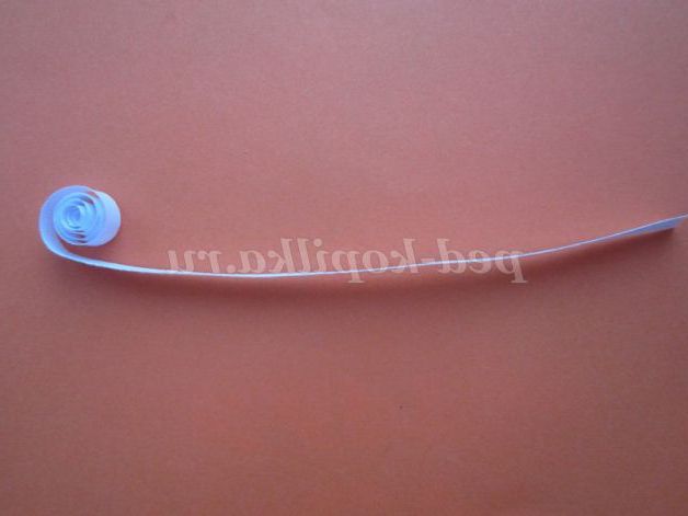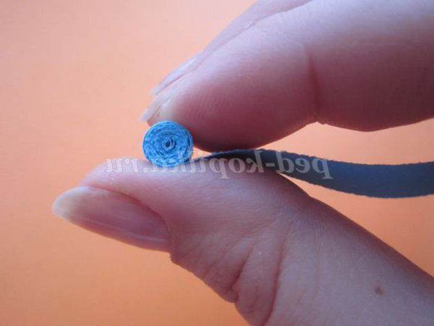 5. З білої смужки скрутіть щільну спіраль і оберніть смужку синього кольору.