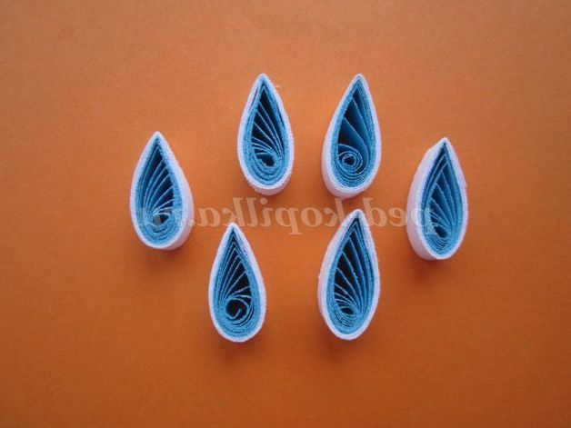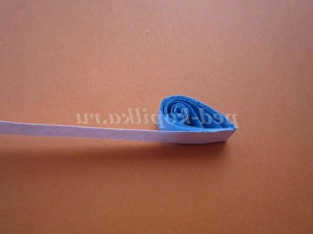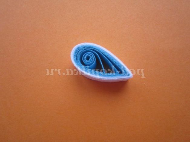 4. До синьої «крапельці» підклеїти білу смужку і обернути нею «крапельку». Виконайте 6 таких деталей.