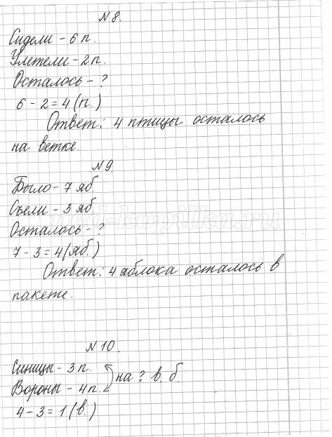 8. На гілці сиділо 6 птахів. 2 птахи відлетіли. Скільки пташок залишилося на гілці?