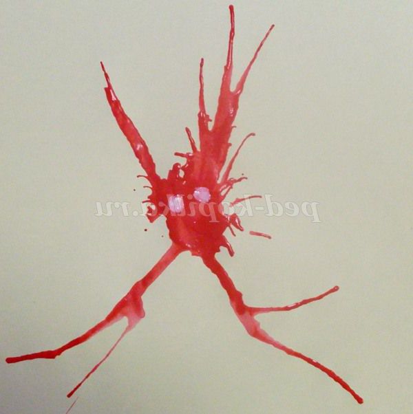 3. З отриманої крапелькою дітям пропонується пограти,перевертаючи лист у різні боки,щоб фарба розтеклася