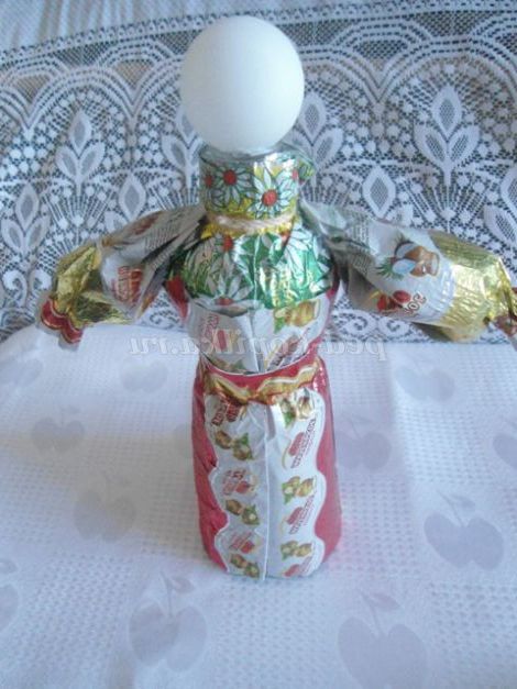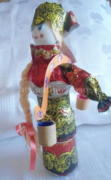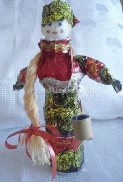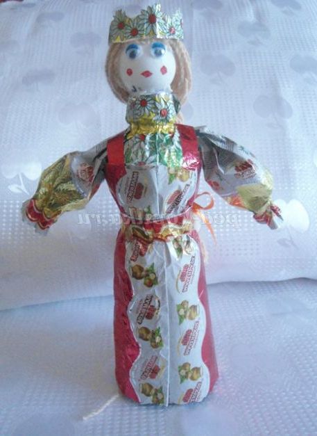 А ми з фантиків ми робимо різні вироби. Пропоную вашій увазі майстер - клас з виготовлення вбрання для ляльок з фантиків. Цих ляльок можна використовувати для настільного театру, для оформлення фольклорного куточка, куточка Росії в групі, для подарунка.
