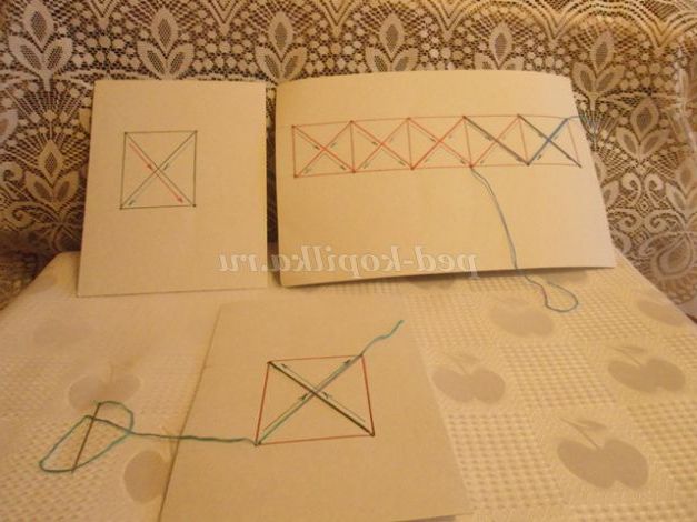 5.Полоски з картону з розміткою для виконання ряду горизонтальних хрестиків для вправи у вишиванні, вміння дітей бачити клітку на вишивці. (фото 5)