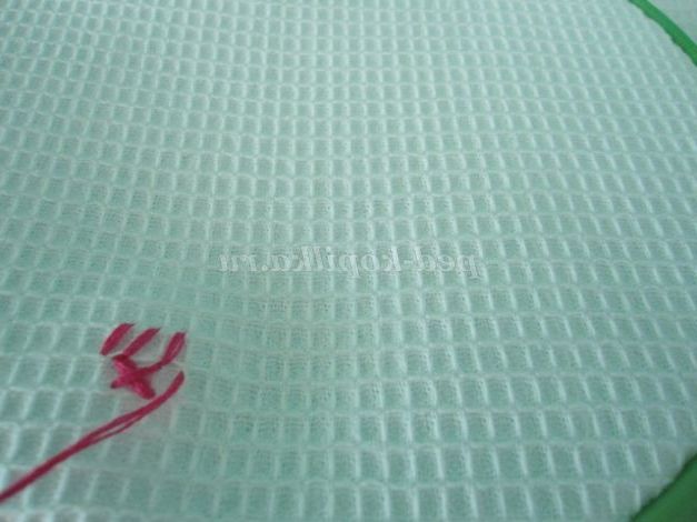 10.Протягиваем голку з ниткою і залишаємо хвостик нитки, нитка пройшла по виворітній стороні роботи. (фото 10)