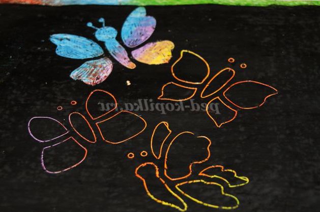 Розфарбувати аркуш паперу кольоровими восковими олівцями. Олівець повинен покрити лист щільним шаром.