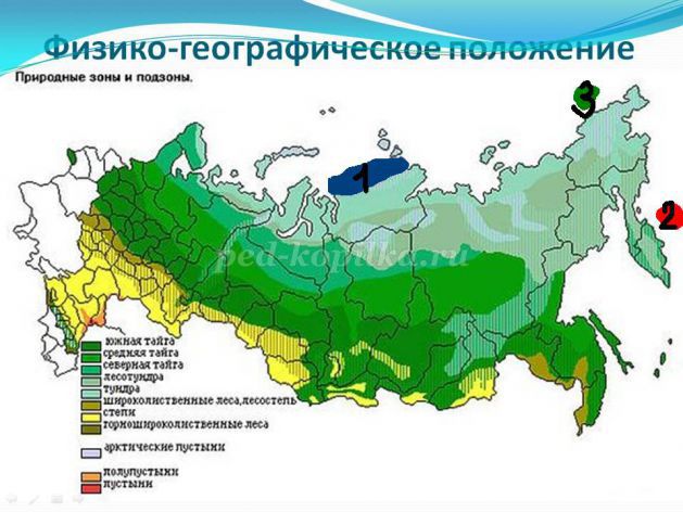 Знайди на карті Мурманську область та розфарбуй її природні зони відповідними кольорами.