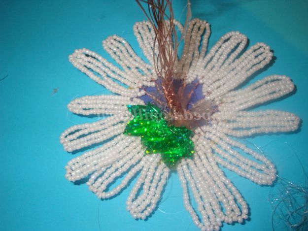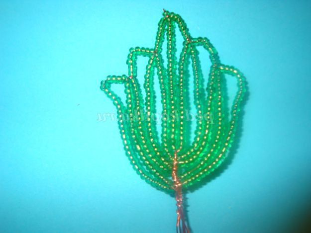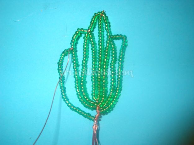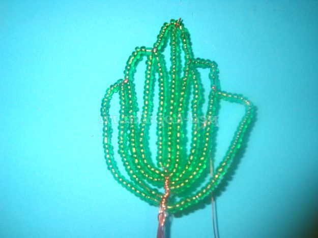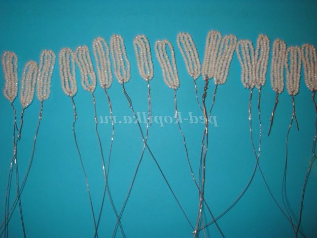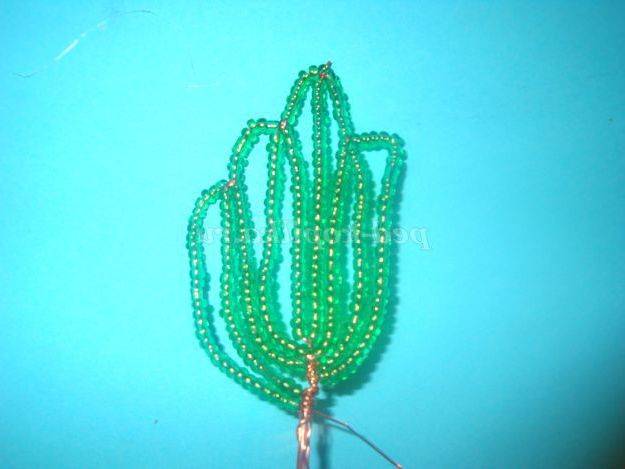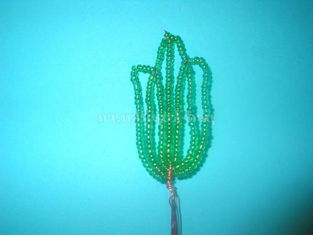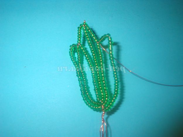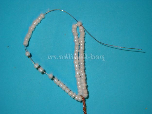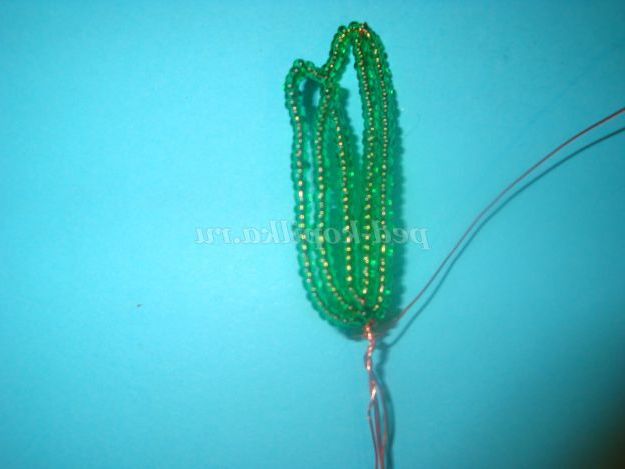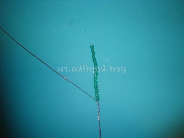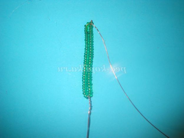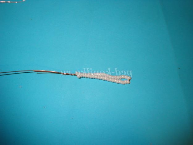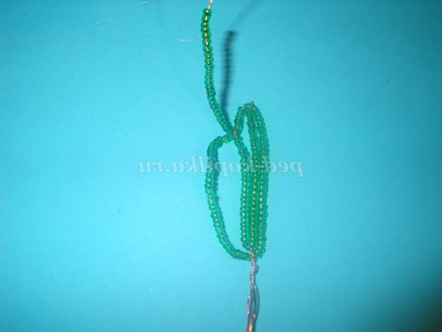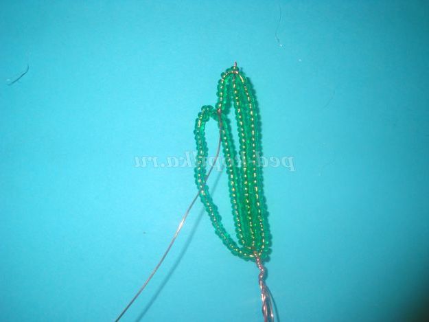 Потім одягаємо 25 бісерін і опускаємося вниз і обмотуємо дріт навколо підстави (внизу).