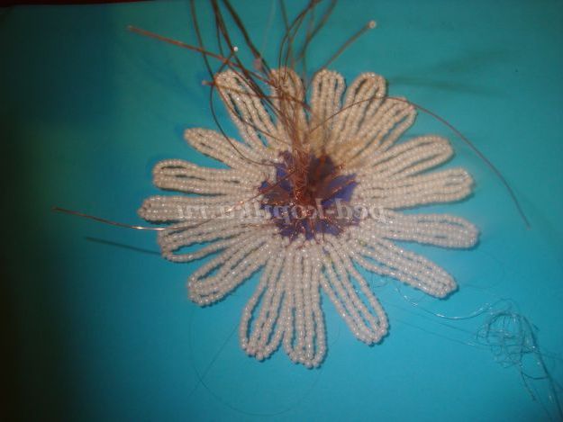 На робочий кінець дроту набираємо 31 бісеринку і обмотуємо дріт навколо підстави (внизу).