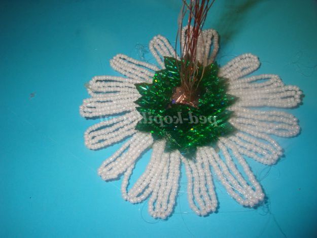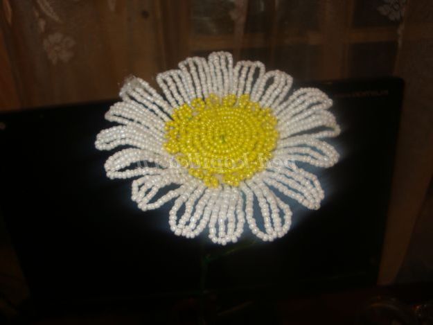 Квіти з бісеру завжди є оригінальним подарунком, їх можна дарувати і дорослим і дітям. Такі квіти можуть простояти дуже довго! Виконати це виріб не складно. Виконана ромашка методом низання дугами.