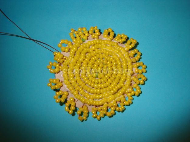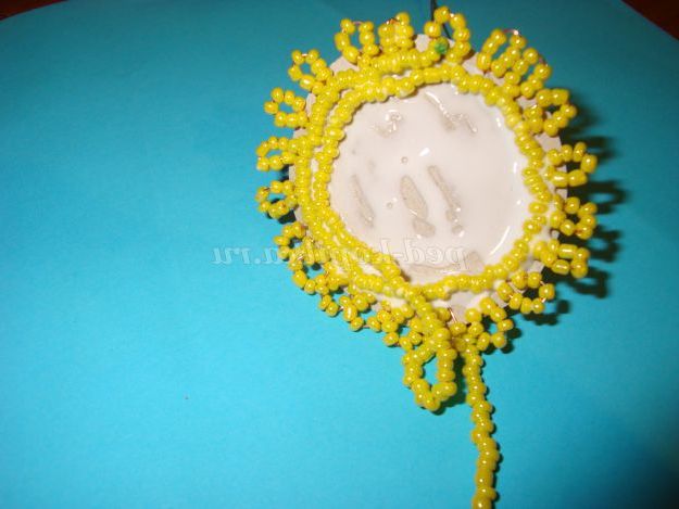 Залийте серединку клеєм і наклейте жовтий бісер.