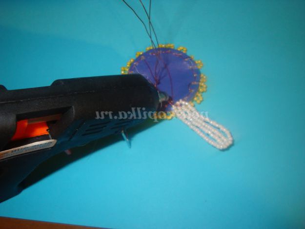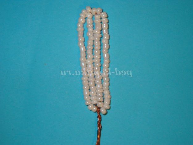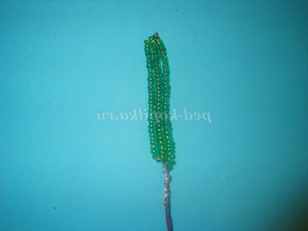 На робочий кінець дроту набираємо 25 бісерін і обмотуємо дріт навколо підстави (внизу).