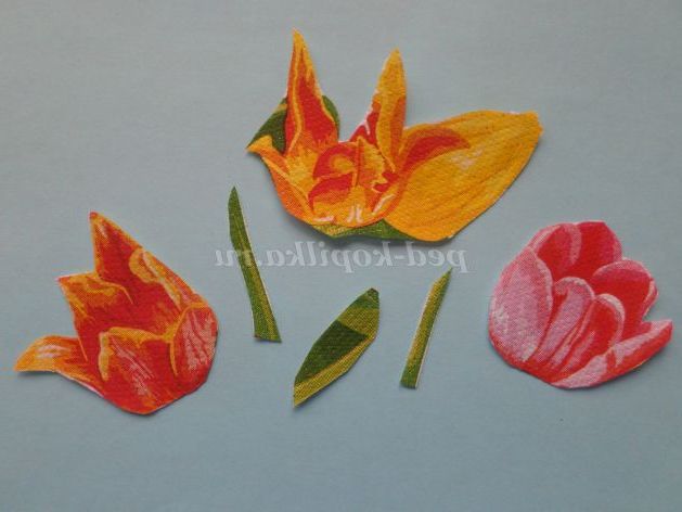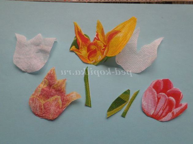 4.Приложить до поверхні картинку, промокнути пензликом з клеєм, розправляючи від середини картинки. Так проробити з усіма картинками.