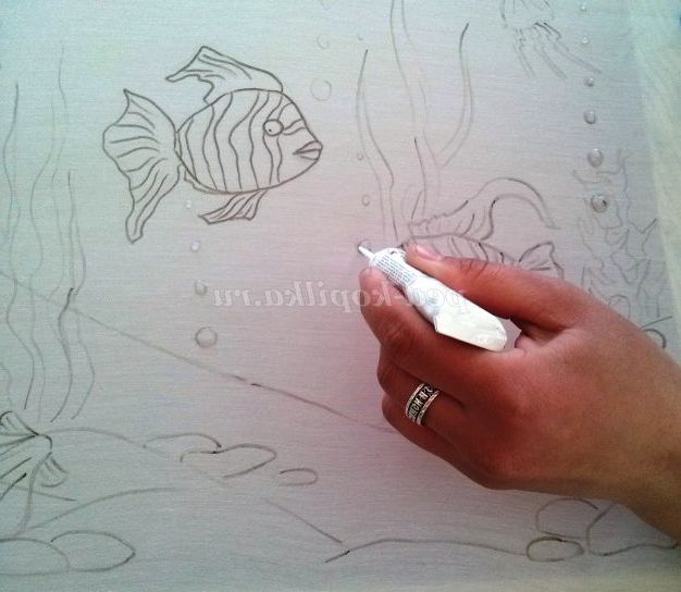 Залишаємо роботу гарненько просохнути. Через деякий час звичайною водою і пензлем перевіряємо міцність контурів. Все дуже просто, якщо вода не розтікається за завдану контур, то і фарба не буде розтікатися. якщо ж є патьоки то в цьому місці ще раз проходимо контуром.