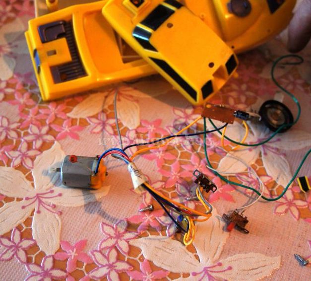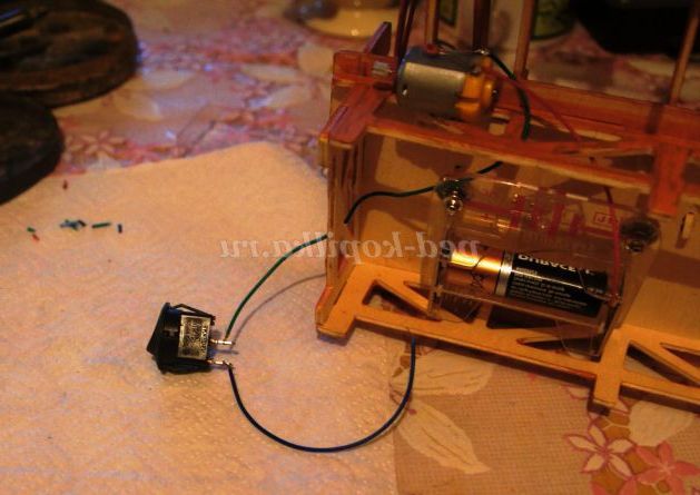 4. Продумати електричну схему, встановити моторчик, вимикач і паяти проводи.