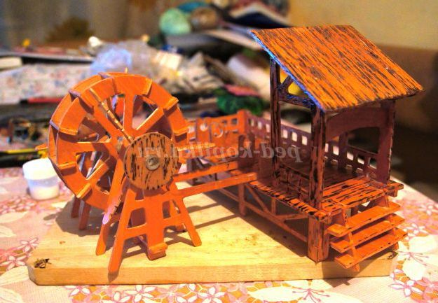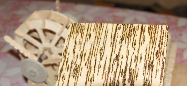 Млин потрібно зістарити - випалюємо візерунок нагадує візерунок на розпилі дерева, профарбовуємо фарбою покриваємо лаком.