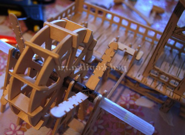 Головна проблема збірної моделі - деталі з'єднуються в пази і прорізи без допомоги клею, складаються з великої кількості дрібних деталей, досить хитка. І якщо встановлювати моторчик і батарейку на цю конструкцію, вона може не витримати.