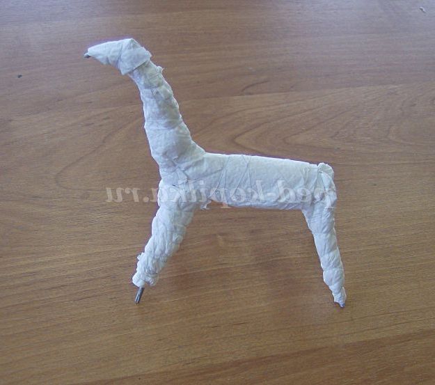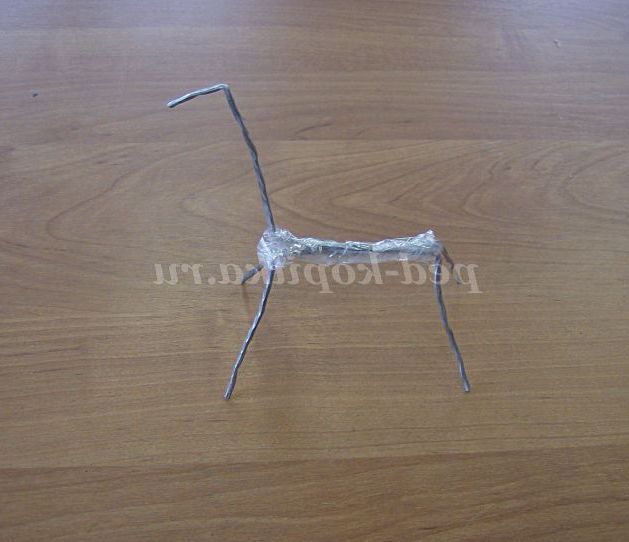 З алюмінієвої дроту збираємо каркас коні. Каркас - це своєрідний «скелет» Коня. Елементи каркасу (ноги, голова і шия) з'єднуємо скотчем.