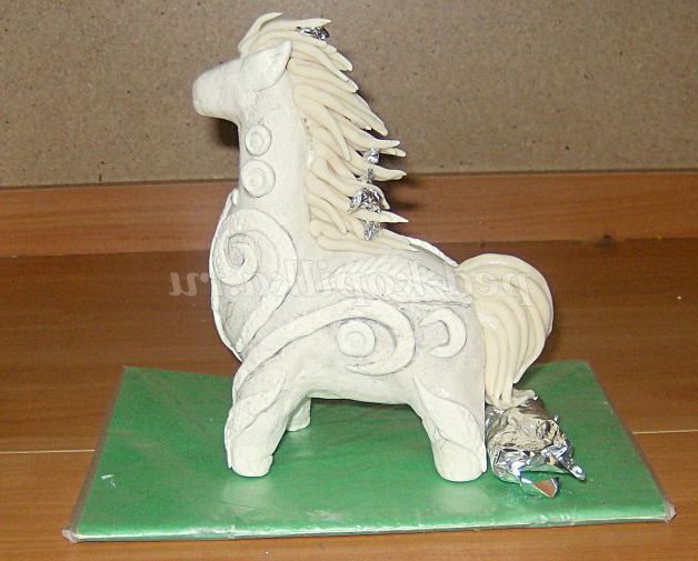Хвостик формуємо так само, як і в гриву. За допомогою фольги кінчик хвоста піднімаємо. Це надає Коні форму грайливості.