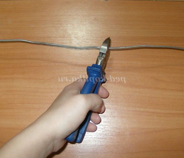 Відрізаємо 2 шматка товстої алюмінієвої дроту, один кінець яких плоскогубцями загинаємо у формі сердечка.