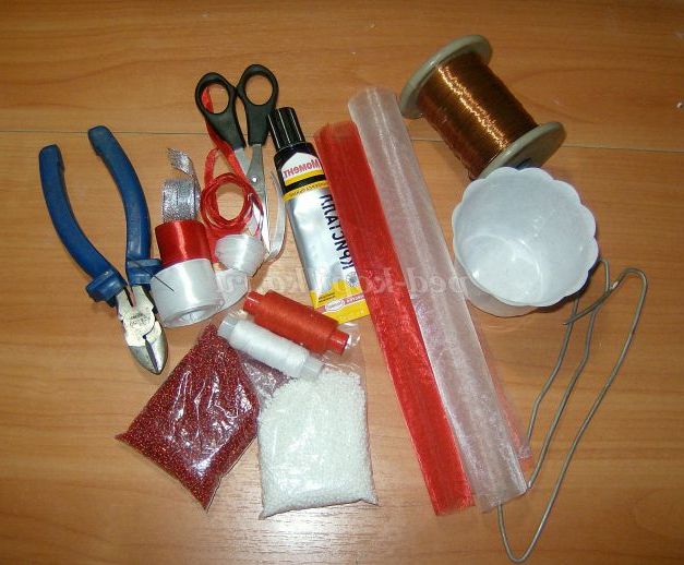 - вузькі атласні стрічки (білі, червоні, сріблясті)