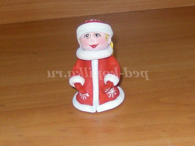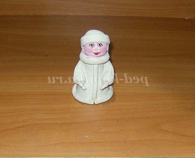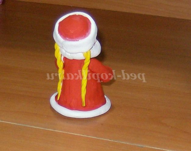 Фігурка Снігуроньки в червоній шубі виготовляється за такою ж технологією. Пропоную покрокове фото з її виготовлення.